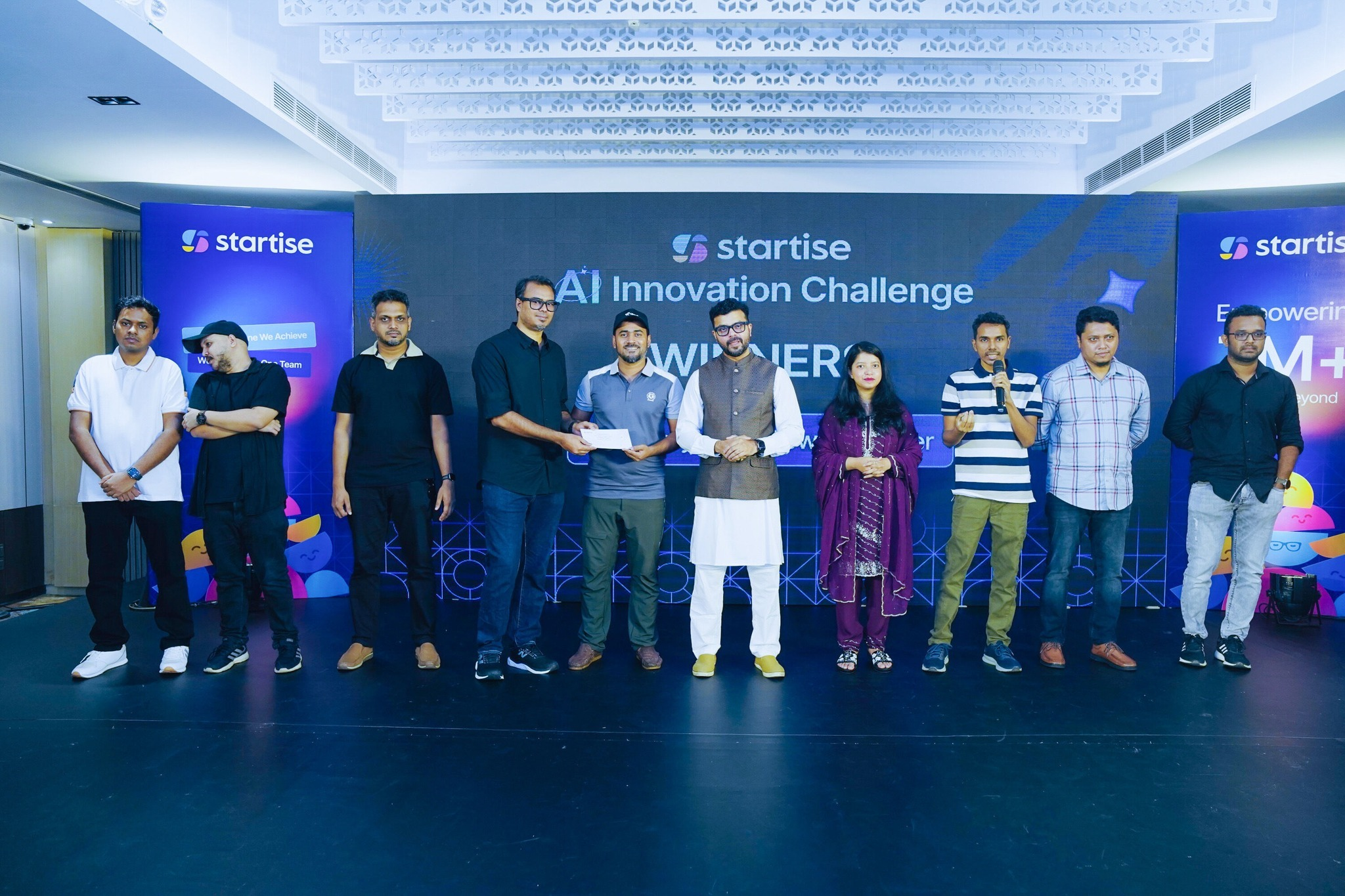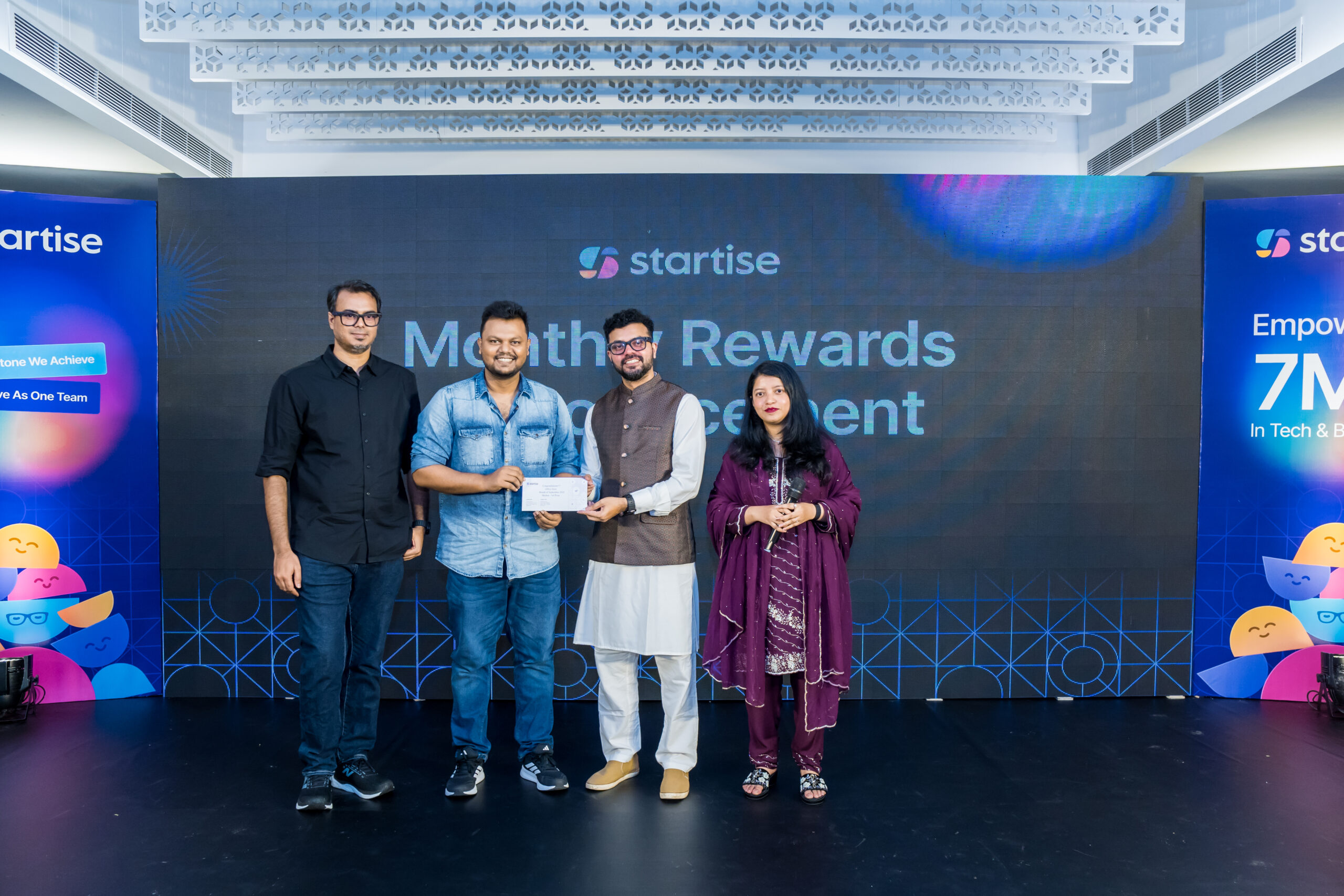 The winners were rewarded with an exciting prize pool, which consisted of not just prize money, but also tools and tech subscriptions that will help them unlock their potential even more! Our leadership team proudly honored the winners on stage, celebrating their creativity and contribution to Startise’s journey.